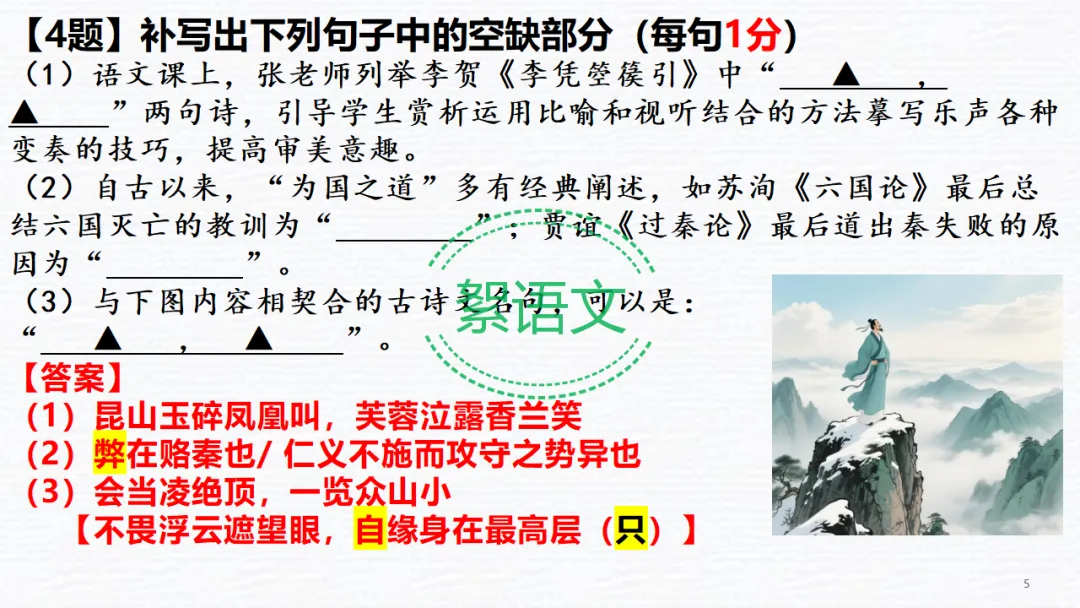 (4)与下图内容相契合的古诗文名句,可以是:“,。”