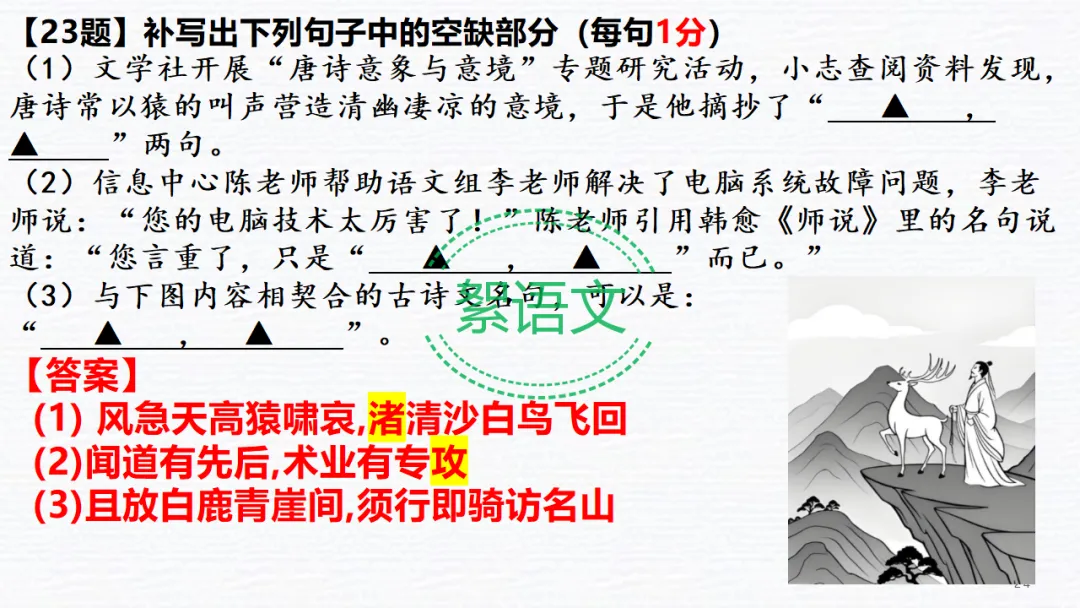 23.(1)风急天高猿啸哀,渚清沙白鸟飞回