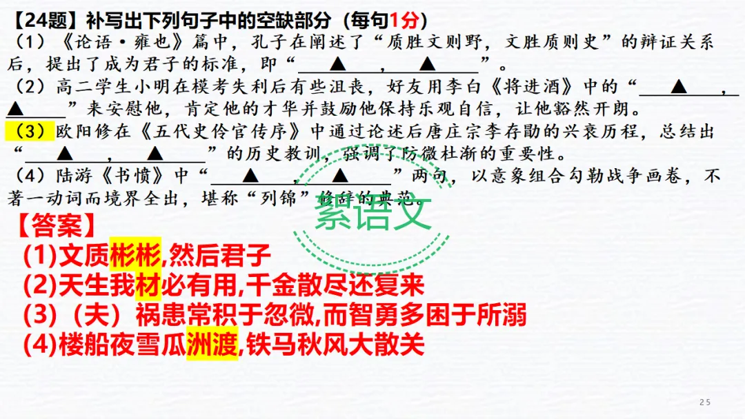 (3)高三冲刺班期中总结会上,班主任引用《五代史伶官传序》中“,”两句告诫学生高三学习时要注意细节,注意细小知识点的积累,休息时不要沉溺于手机等电子产品。