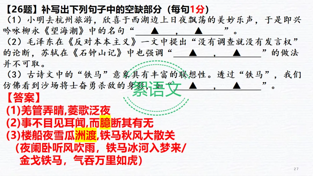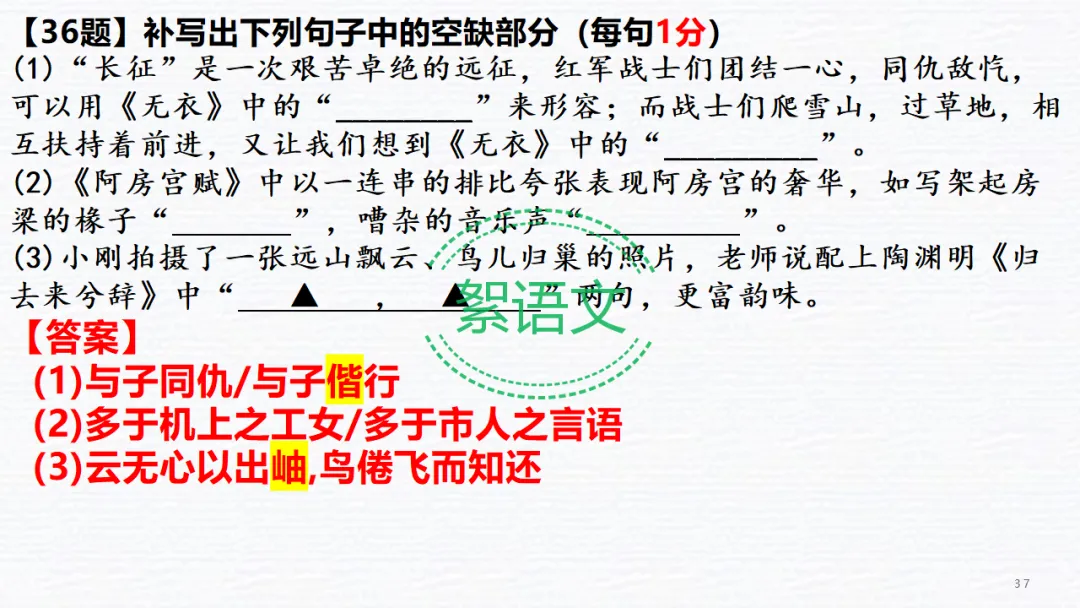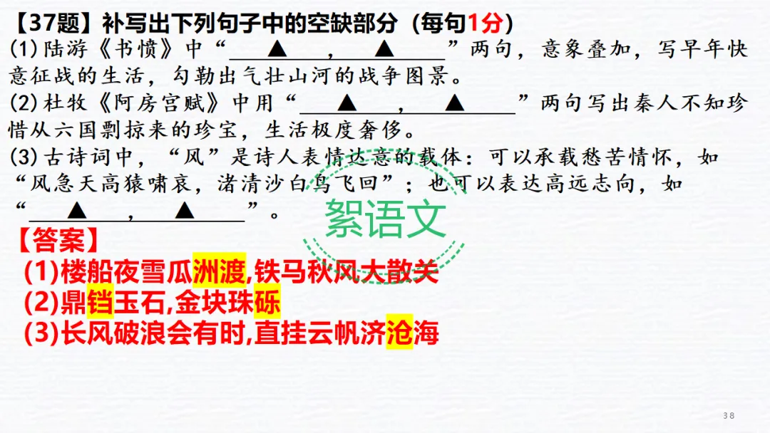 37.(1)楼船夜雪瓜洲渡,铁马秋风大散关