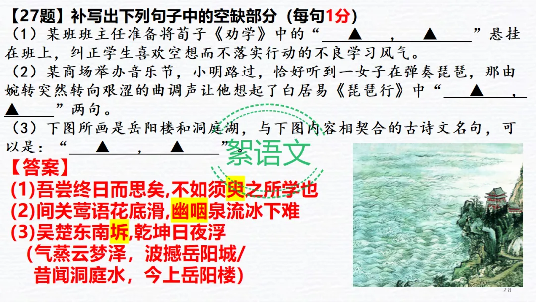 27.(1)吾尝终日而思矣,不如须臾之所学也