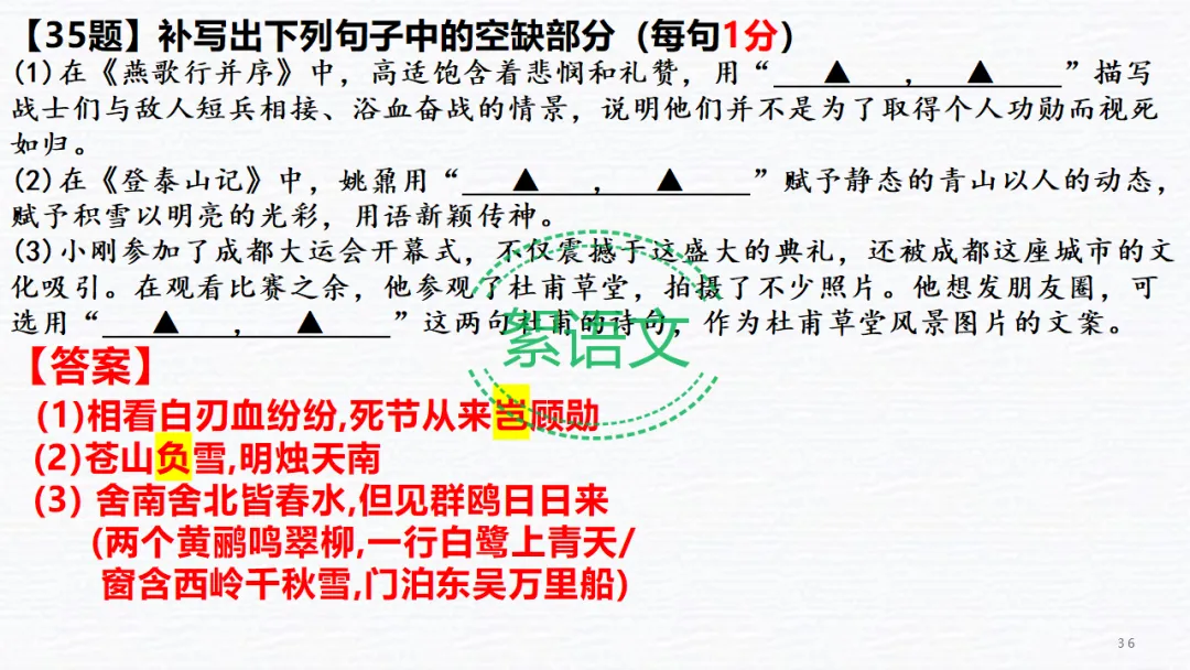 35.(1)相看白刃血纷纷,死节从来岂顾勋