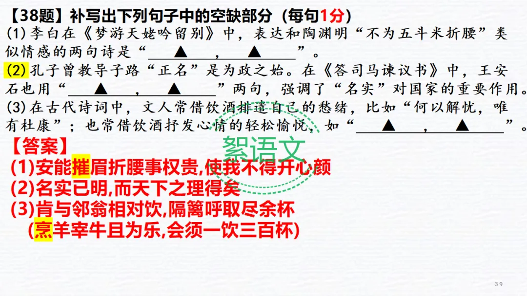 38.(1)安能摧眉折腰事权贵,使我不得开心颜