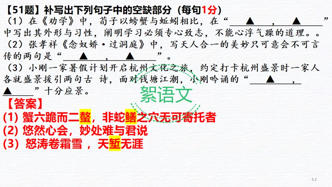 51.(1)蟹六跪而二螯,非蛇鳝之穴无可寄托者