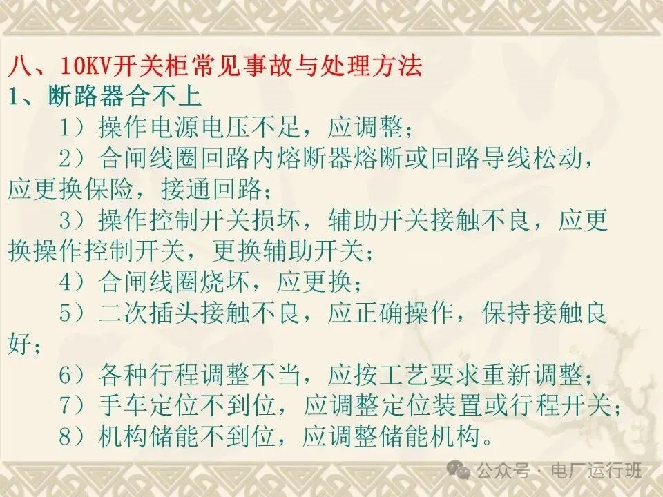 八、10KV开关柜常见事故与处理方法