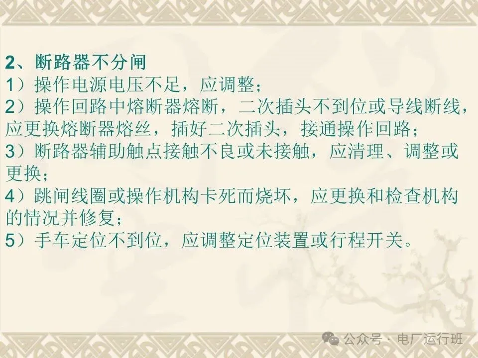 1)操作电源电压不足,应调整;