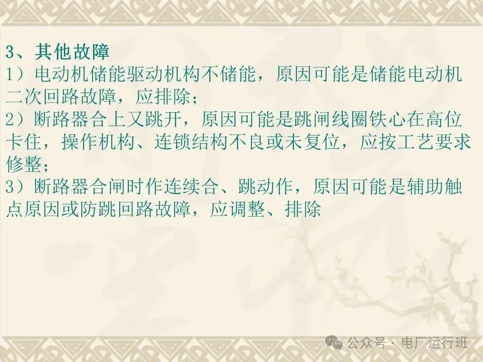 8)机构储能不到位,应调整储能机构。