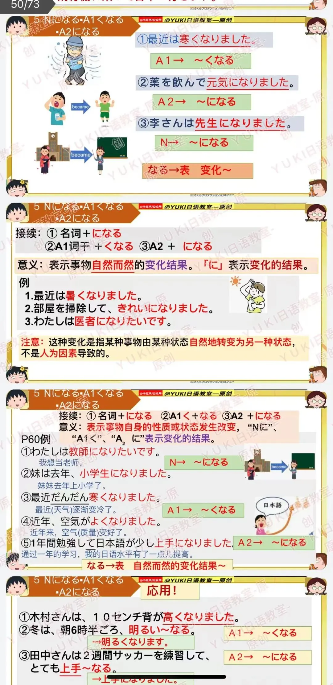 语法重点本课注意 Nになる▪A1くなる▪A2になる用法 注意助词的区别✔