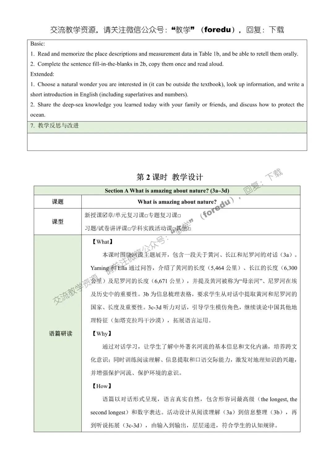 人教版七下新教材教案Unit1 Section A 2a-2f