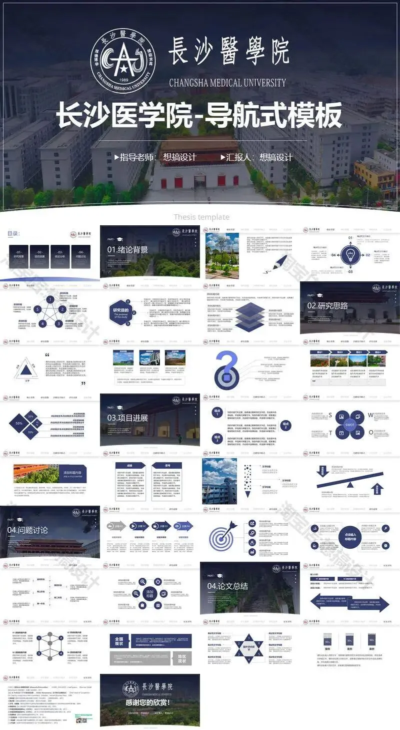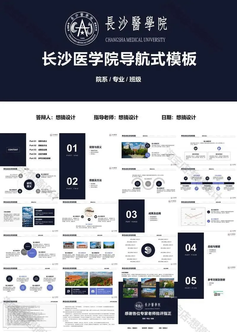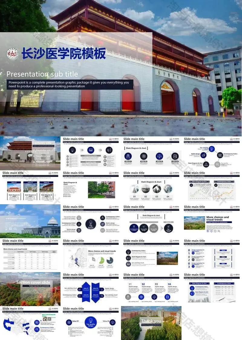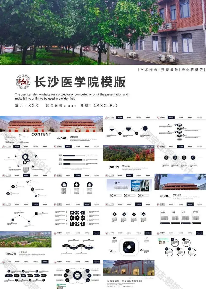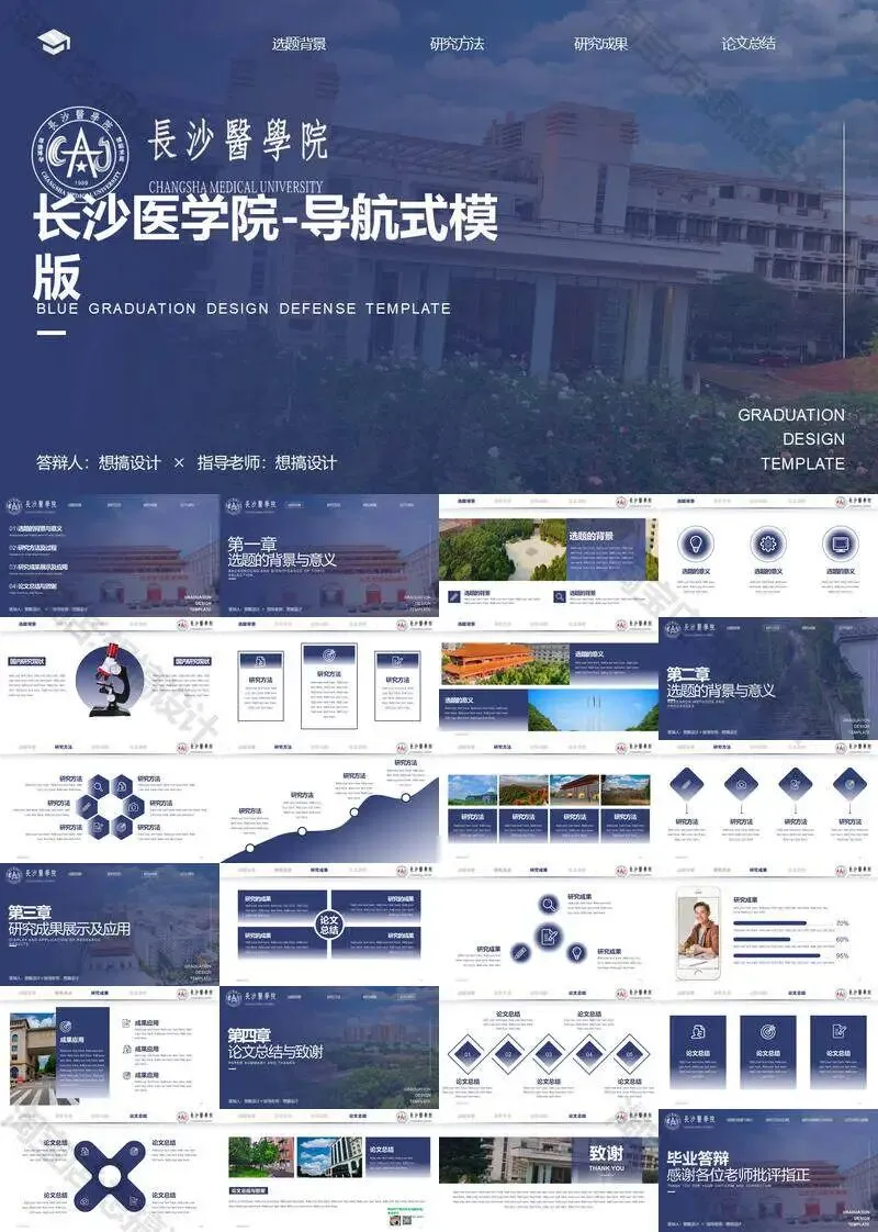 >长沙医学院毕业答辩PPT模板汇报幻灯片课件总结大学生作品集