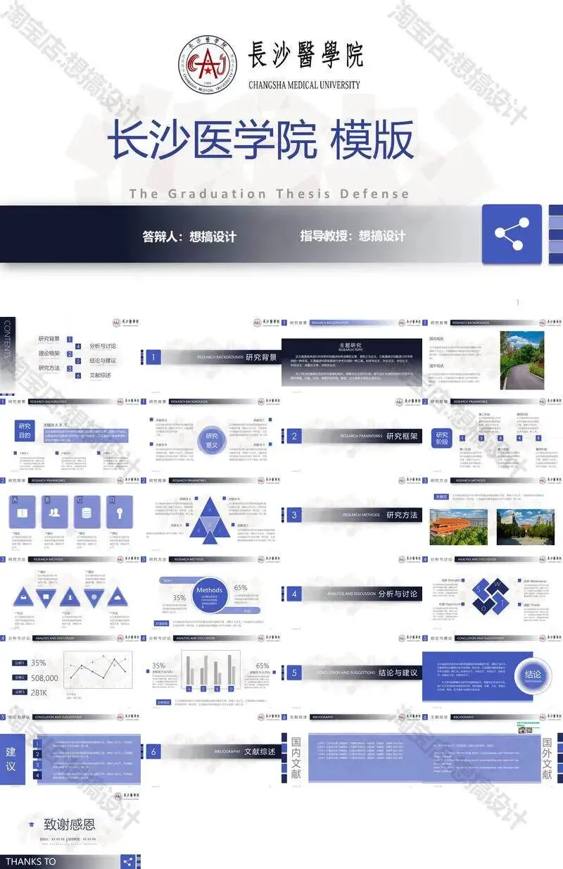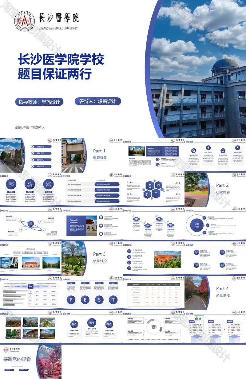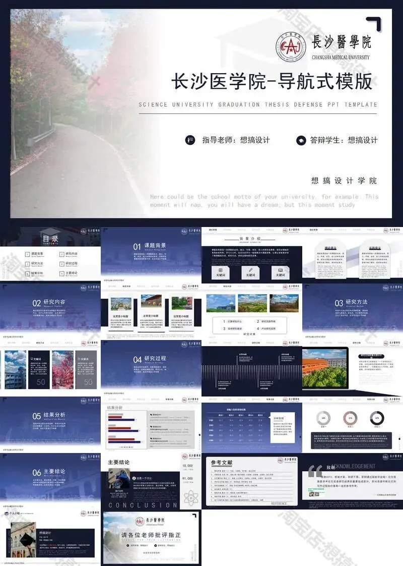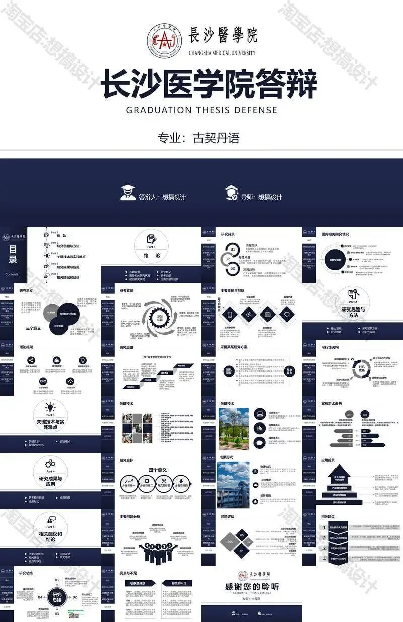 >长沙医学院毕业答辩PPT模板汇报幻灯片课件总结大学生作品集