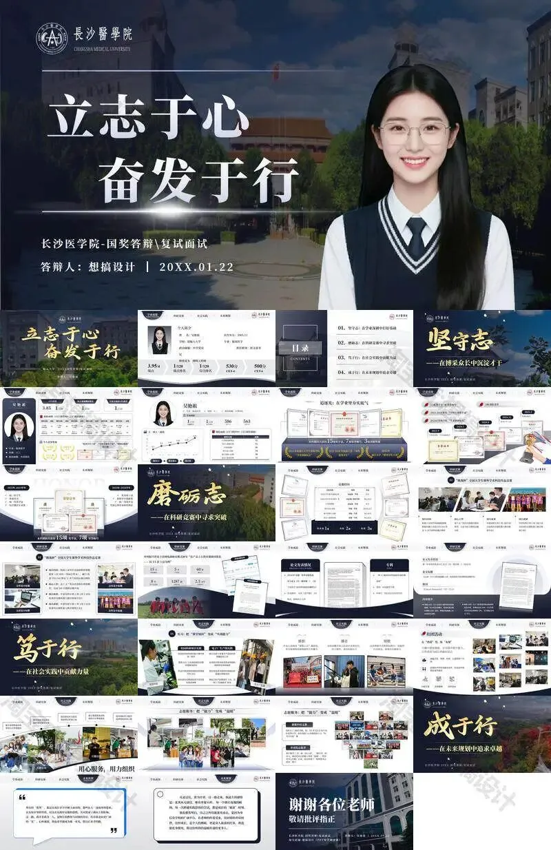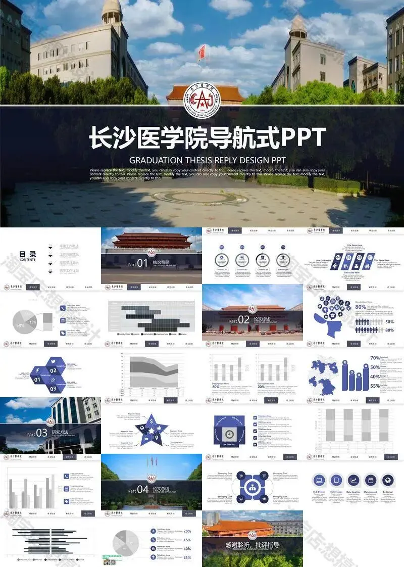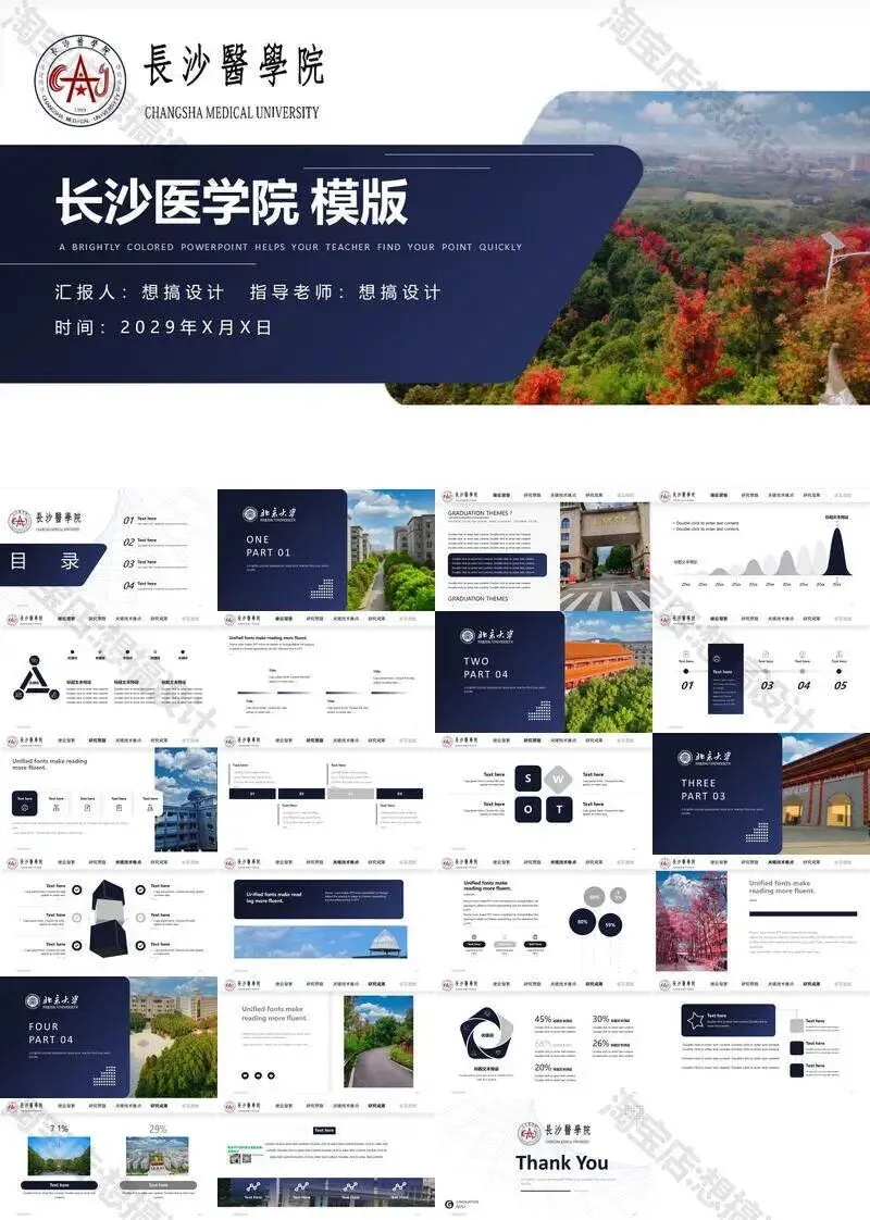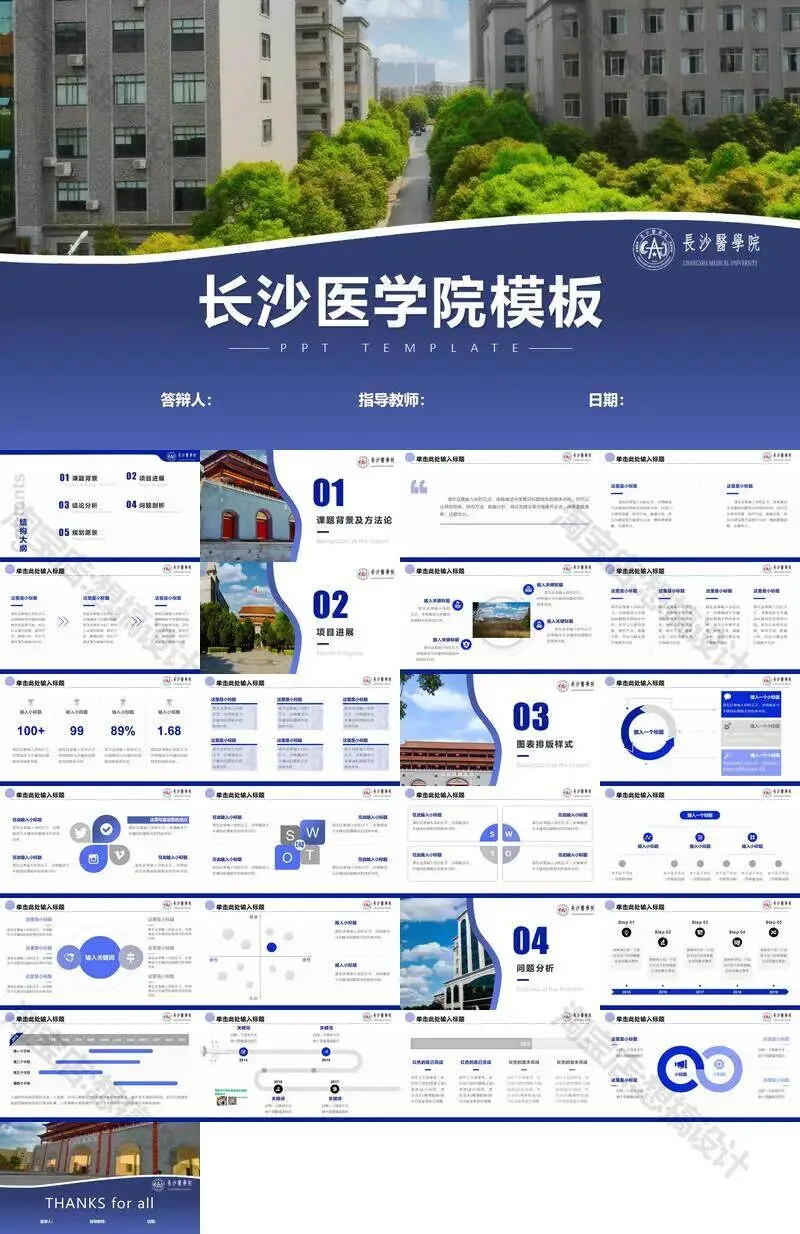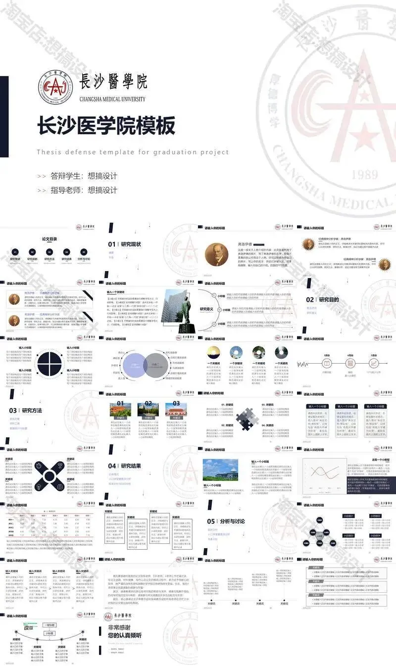 长沙医学院毕业答辩PPT模板汇报幻灯片课件总结大学生作品集