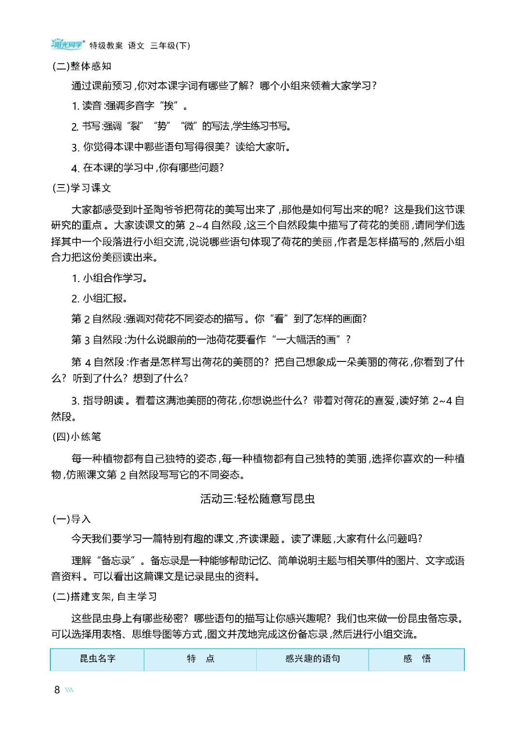 当前位置:首页>教案>三年级语文单元任务群教学设计《特级教案》1-8单元整册(word版可下载)