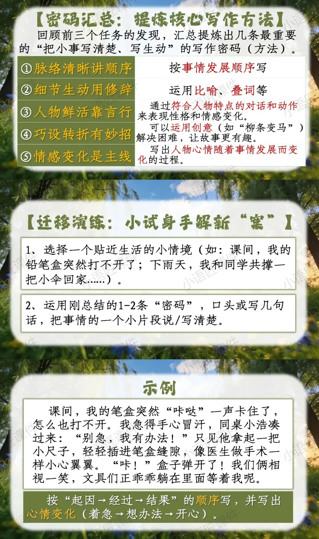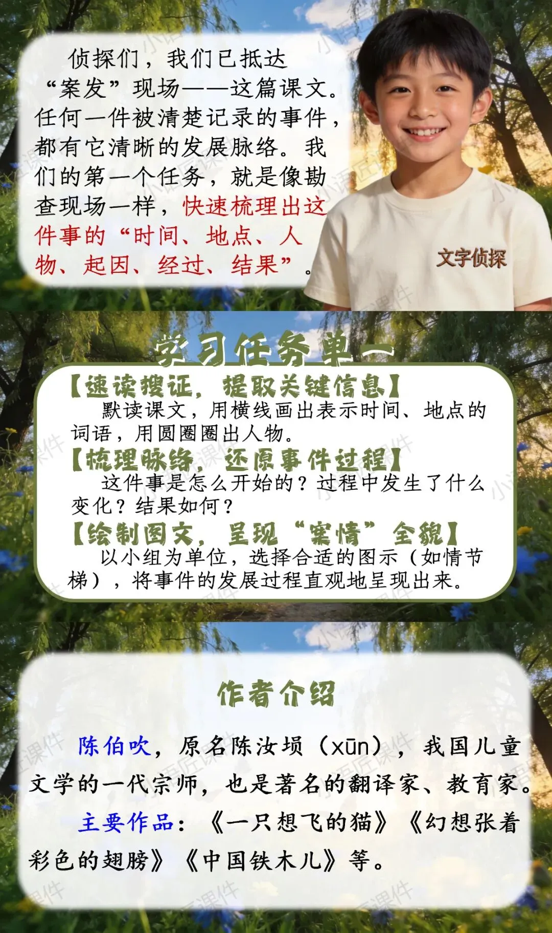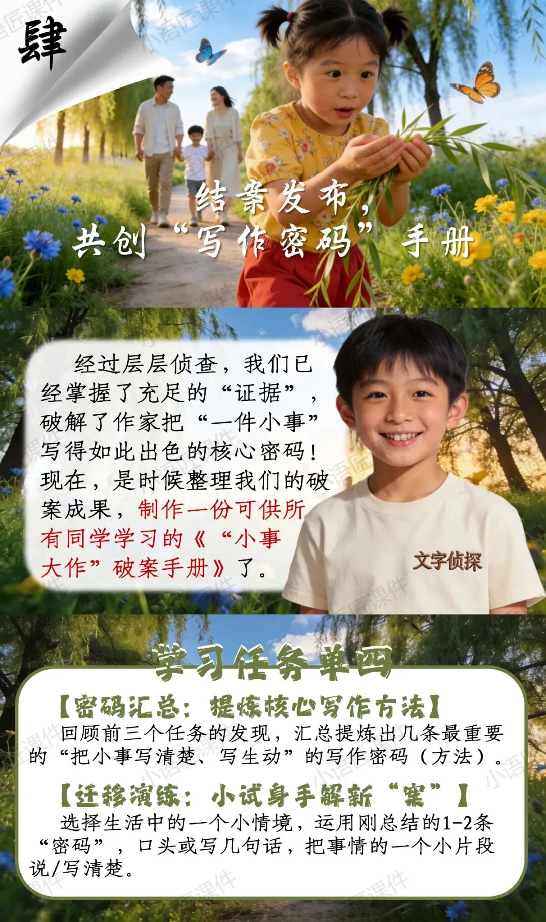 【二下课件】“文字侦探社,破解'小事大作'的写作密码”——《一匹出色的马》(视频++教学设计)