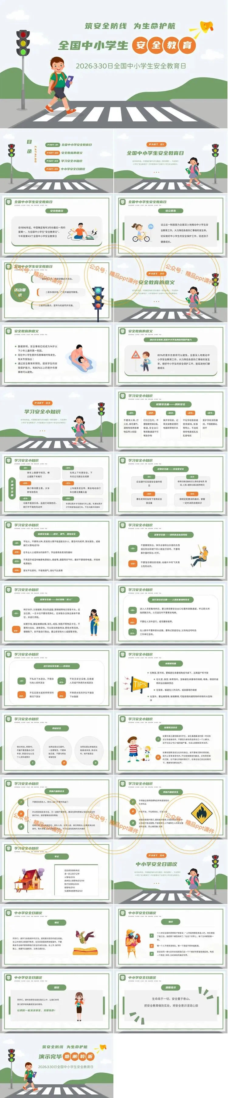 2、本公众号成立的初衷是为广大ppt使用者提升工作效率,所发布的课件资源仅供学习交流禁止用于商业用途,有偿所得用来维系公众号运营所支出的人工成本,性质为买家友情赞助后获取的信息差而非售卖资源的费用。同意此声明后即可下载本期2026年全国中小学生安全教育日ppt主题班会课件。如有侵犯您的权利,请联系小沐老师。