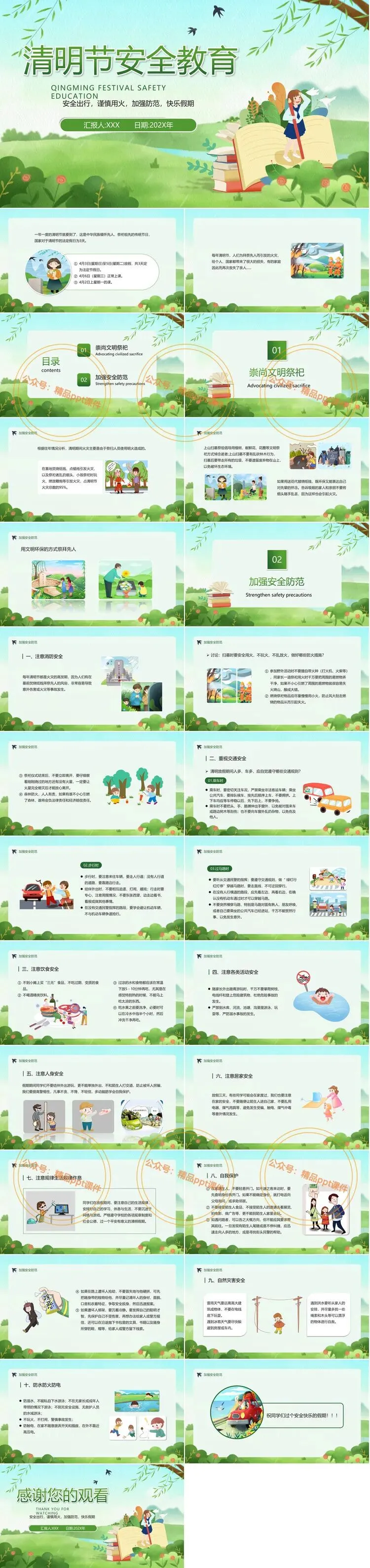2、本公众号成立的初衷是为广大ppt使用者提升工作效率,所发布的课件资源仅供学习交流禁止用于商业用途,有偿所得用来维系公众号运营所支出的人工成本,性质为买家友情赞助后获取的信息差而非售卖资源的费用。同意此声明后即可下载本期清明节缅怀先烈主题班会活动ppt课件+清明节安全教育ppt两套或其中任意一套。如有侵犯您的权利,请联系小沐老师。