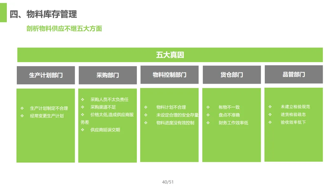 进度控制、质量控制、物料控制、成本控制、准时制生产