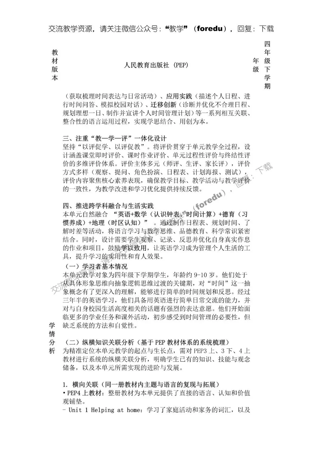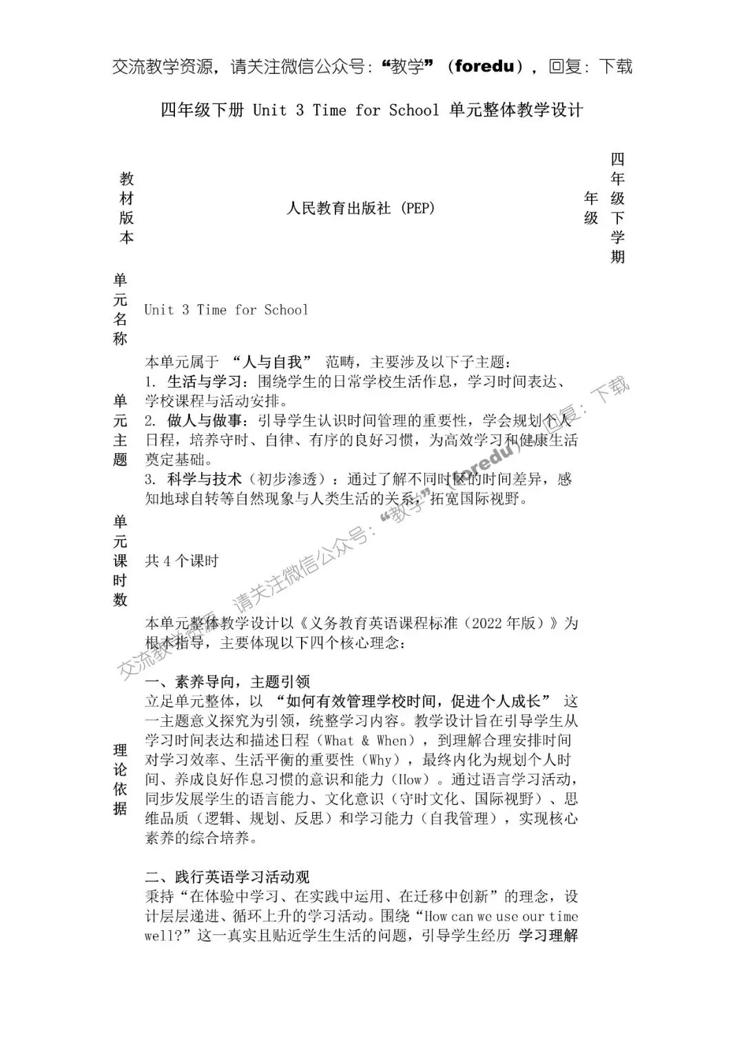 当前位置:首页>教案>人教版四年级下册英语新教材优质教案:Unit3(2026春)