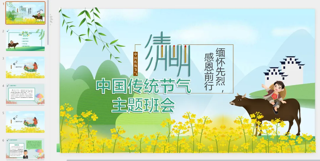 26年清明节主题班会PPT模板+课件,直接套用(免费保存源文件)