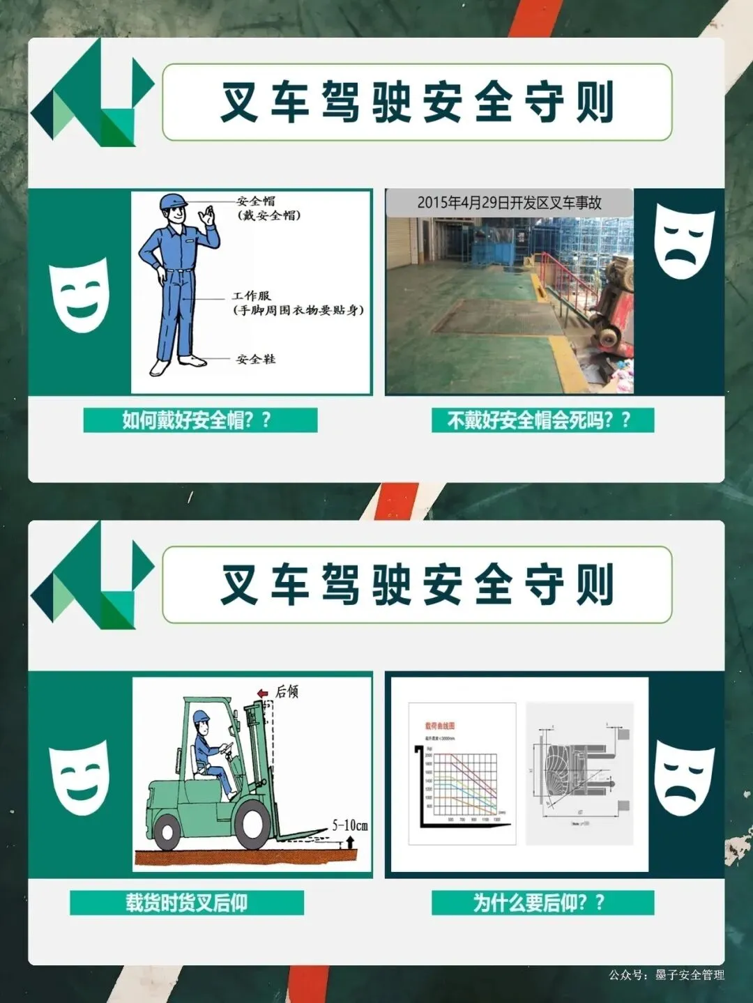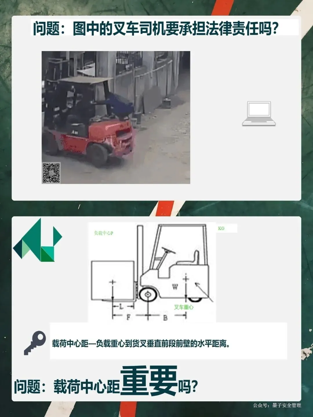 很多朋友觉得自己开了几年车,技术“溜”得很,什么红灯、限速,那是给新手看的。咱们PPT里有个词叫“合法拒绝权”。啥意思?就是如果领导让你超载、让你冒险作业,你有权说“不”!因为法律规定的很清楚,叉车是特种设备,咱们司机是特种作业人员。必须持证上岗,这不仅是法律的要求,更是对你生命的兜底。还有啊,大家看那个“载荷中心距”的图。3吨的车,不一定能叉3吨的货。如果货叉上的东西放得太靠前,重心一偏,哪怕没到3吨,车也可能翻!所以,别拿经验主义去挑战物理定律,超载、偏载、人货混装,这些红线,碰都不能碰。