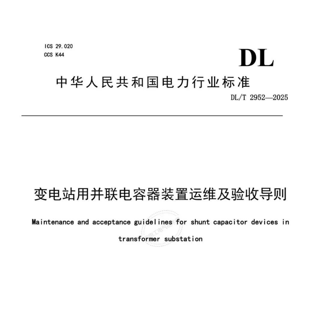 【学习新标准】DL-T-2952-2025 变电站用并联电容器装置运维及验收导则