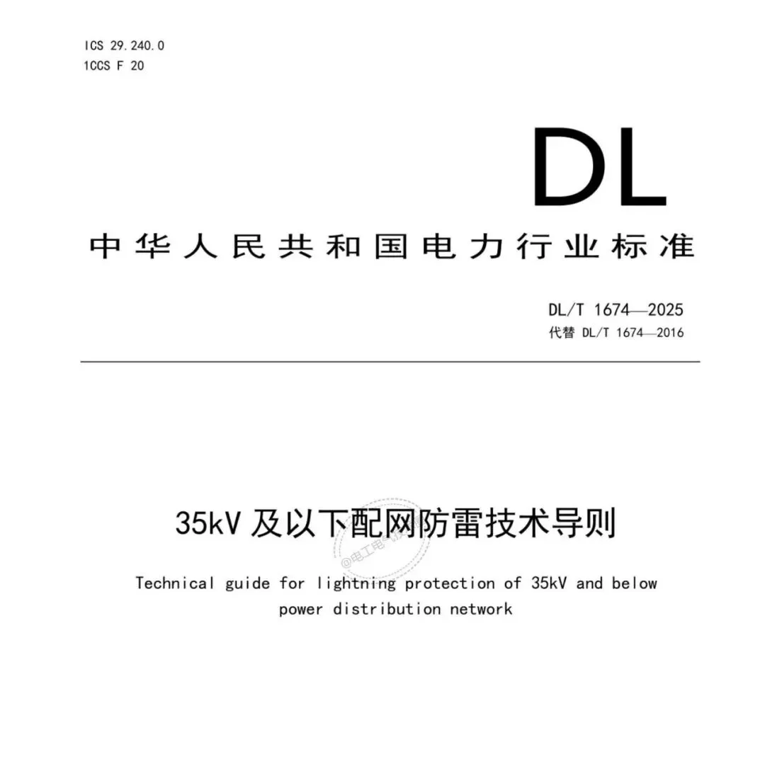 【新标准】DL/T 1674-2025《35kV及以下配网防雷技术导则》,2026年3月28日实施!