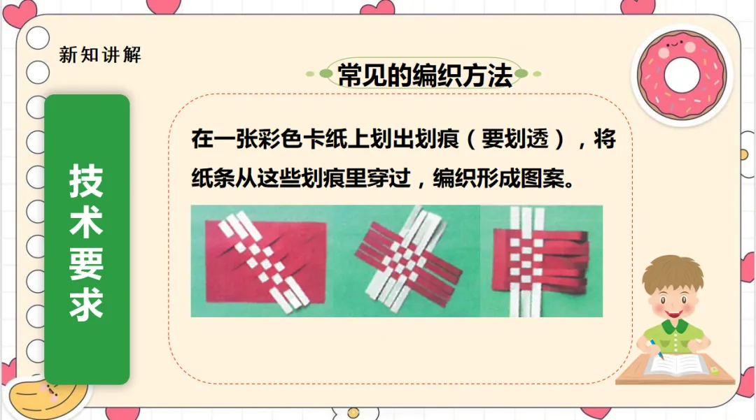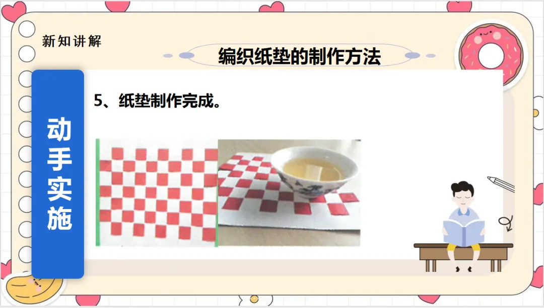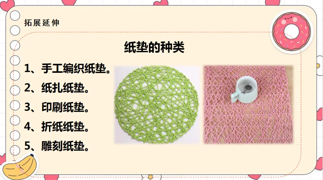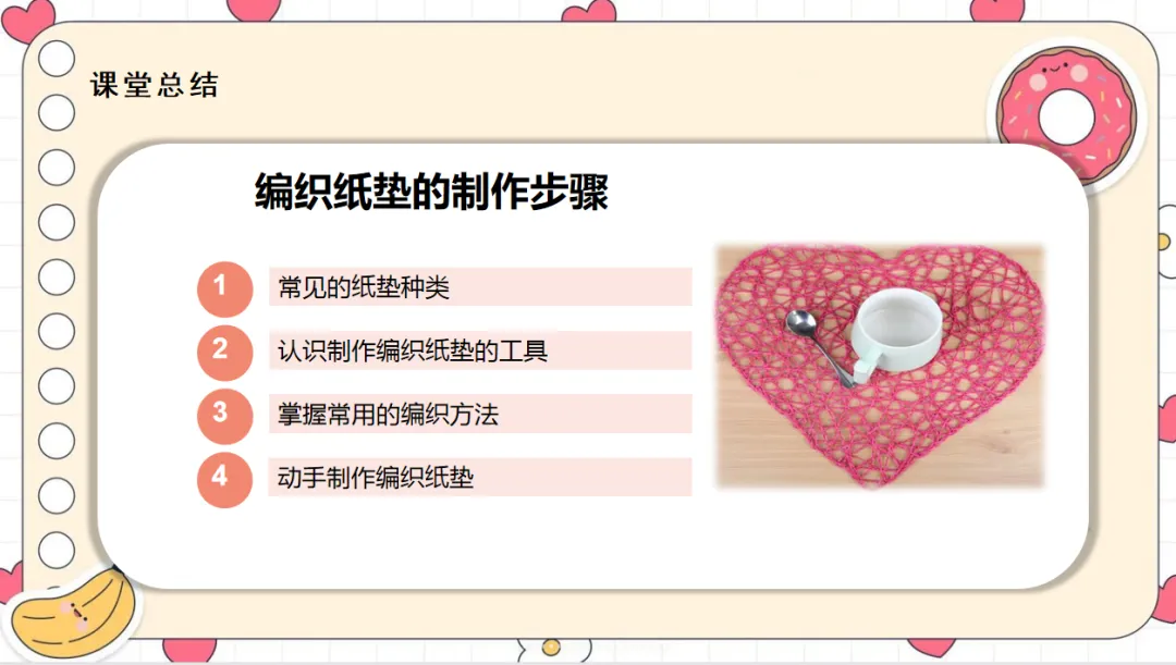 劳动技能:掌握编织纸垫的步骤和技巧,培养学习能力和实践能力,在不断学习和实践的过程中提升编织技术水平。