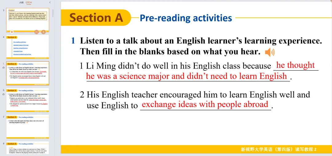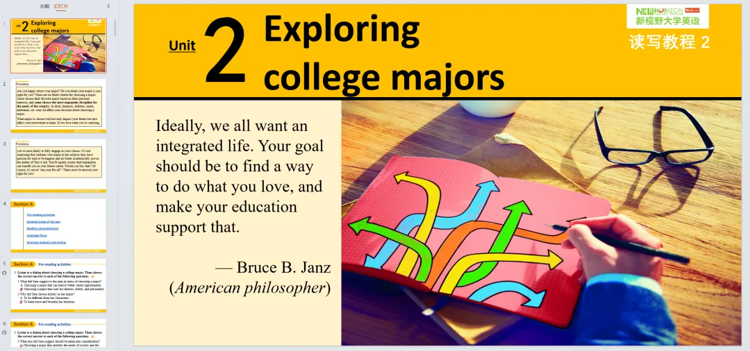 新视野大学英语读写教程 第3册 参考答案+课件PPT+课文翻译(第四版/思政智慧版)。课本答案都在ppt里面,课文翻译在PPT的最后面!!!通过夸克网盘分享的文件:「读写教程2答案及课文翻译」链接:https://pan.quark.cn/s/4b01d9fccbcb