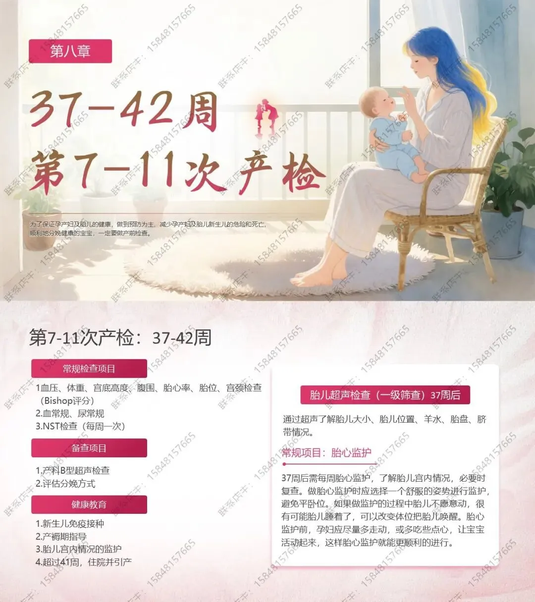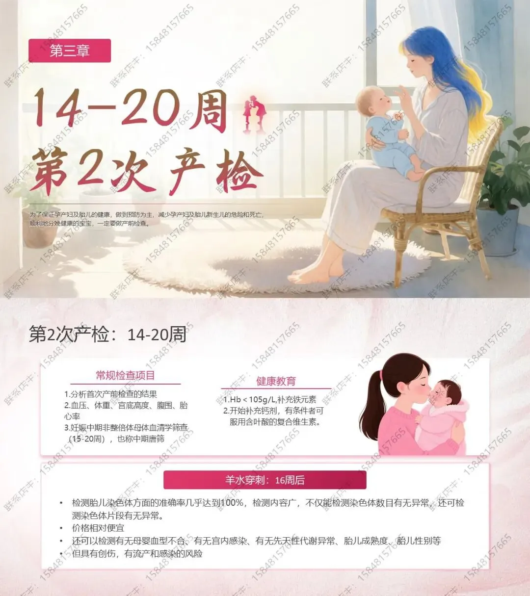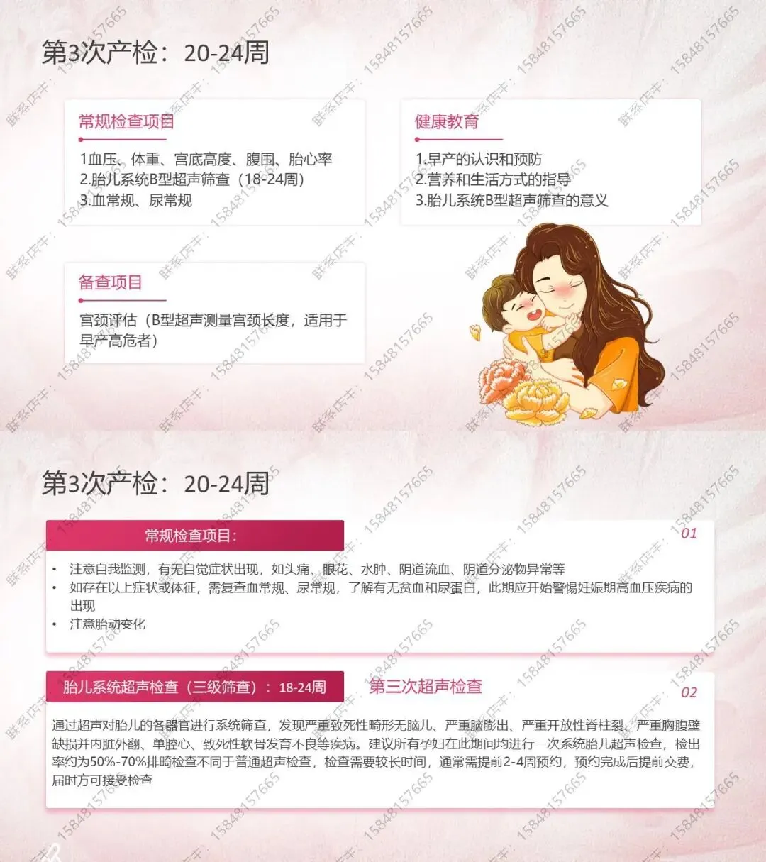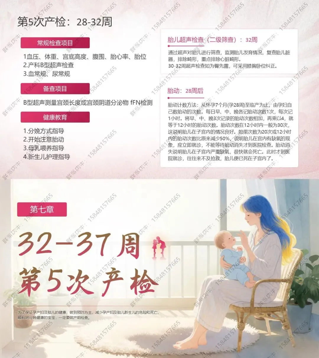 产前检查主要内容培训课件PPT/图文可自由编辑,共27页PPT+4172字讲义 产前筛查重要意义/第1次产检:6-14周/第2次产检:14-20周/第3次产检:20-24周 产前检查、孕期保健、产检项目、母婴健康、唐氏筛查、胎儿超声、妊娠期糖尿病筛查、孕期护理 添加店主获取:15848157665