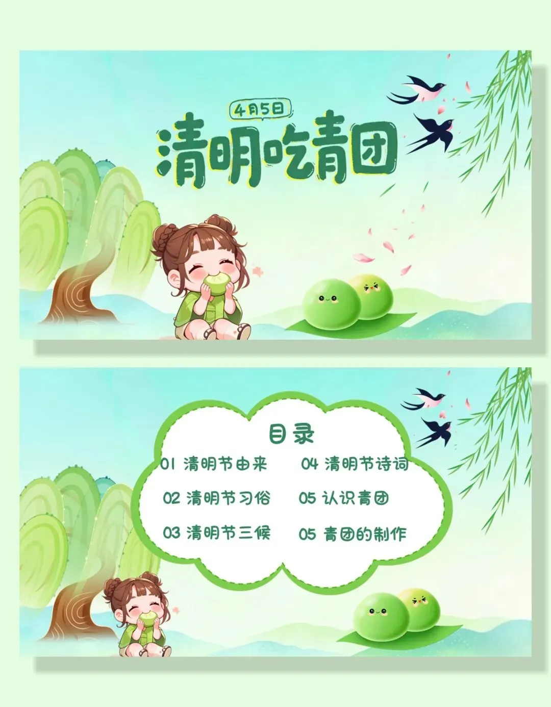 幼儿园清明节主题课件《清明吃青团》PPT+教案+逐字稿+反思