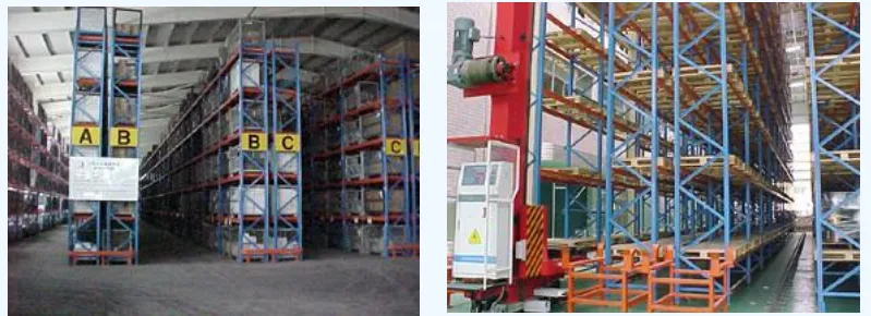 ■对于常见的选择式货架来说,堆垛深度最多两排,即双深式货架,此时可配用带伸缩叉的叉车。但出入库和装卸搬运等操作不太方便,需要全面考虑,具体参见后面案例。