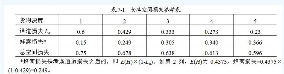 ■通过上述典型计算,在货物不同深度时的通道损失、蜂窝损失及总空间损失见下表7-1。