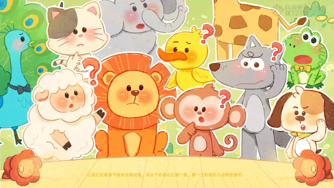 ——让我们试着有节奏地说唱谜面,请台下的观众们猜一猜,第一个到场的小动物是谁吧。