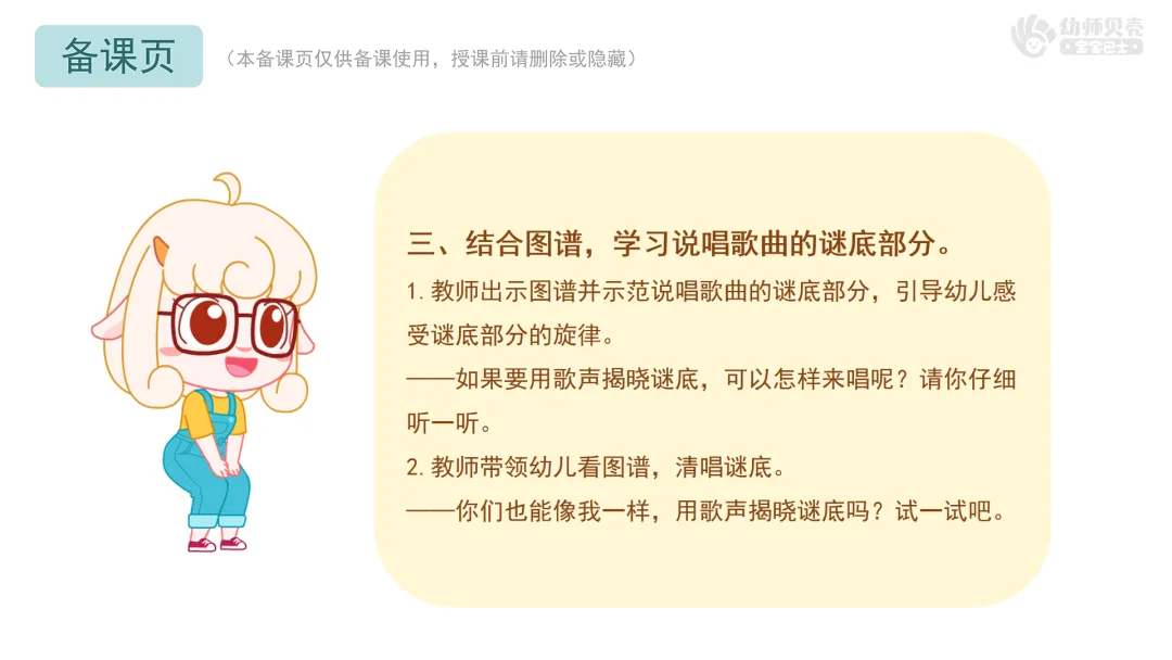 ——如果要用歌声揭晓谜底,可以怎样来唱呢?请你仔细听一听。