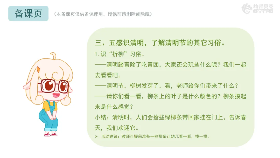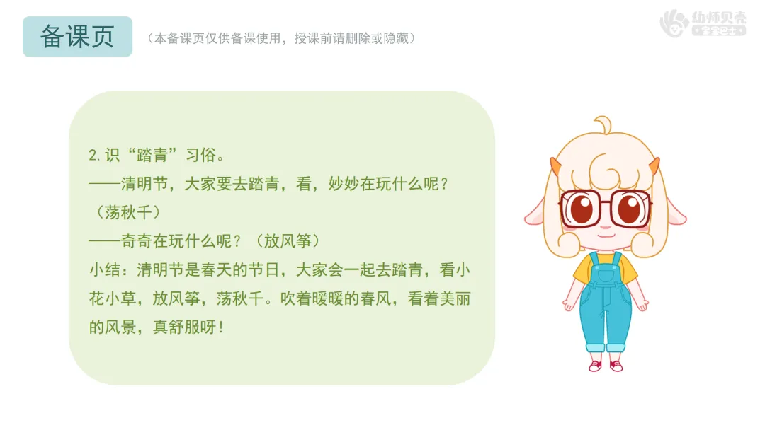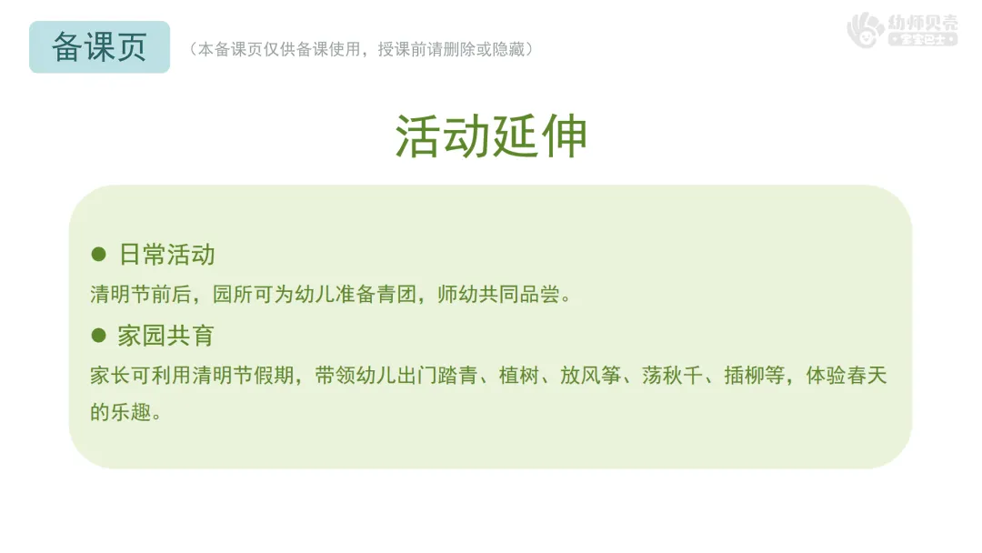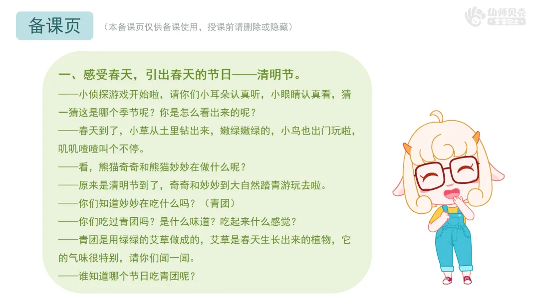 一、感受春天,引出春天的节日——清明节。