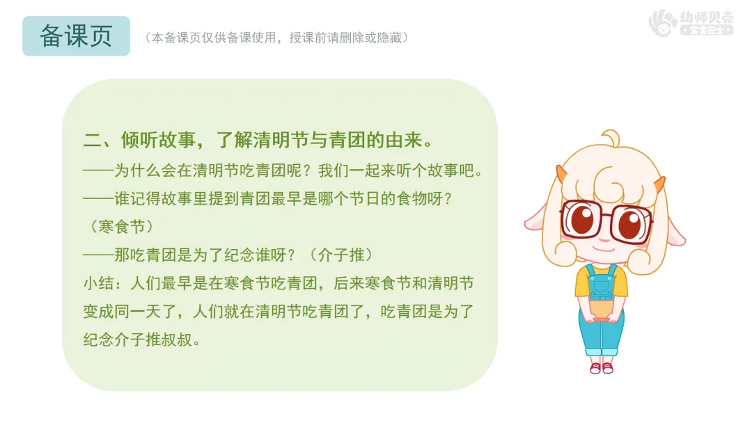 二、倾听故事,了解清明节与青团的由来。