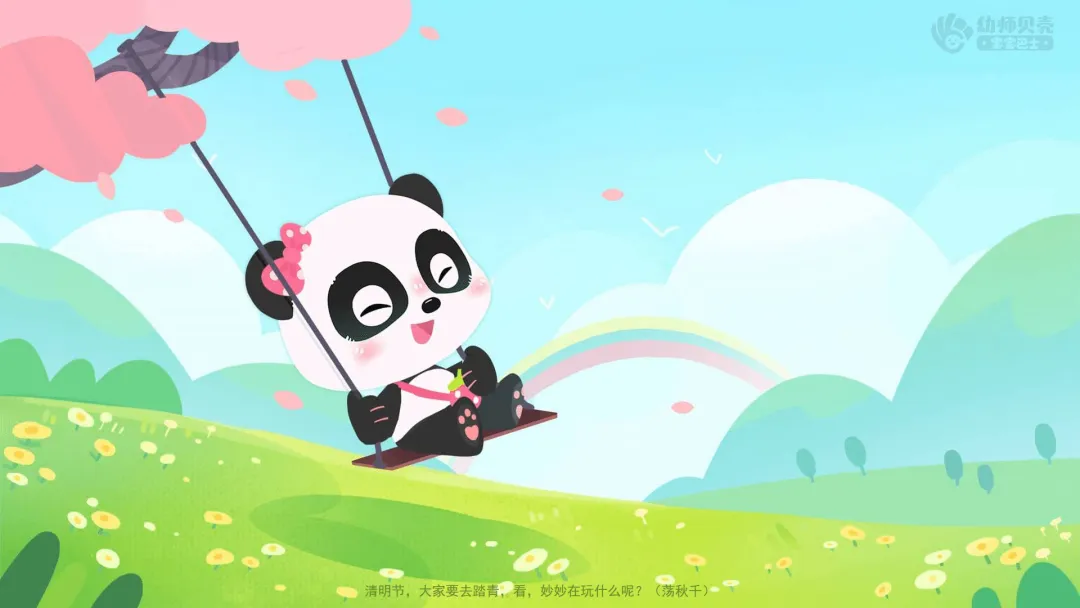 ——清明节,大家要去踏青,看,妙妙在玩什么呢?(荡秋千)