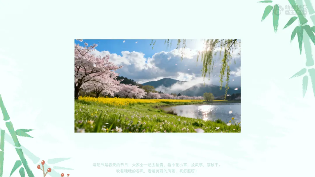 家长可利用清明节假期,带领幼儿出门踏青、植树、放风筝、荡秋千、插柳等,体验春天的乐趣。