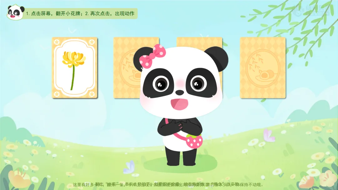 ——这里有好多卡片,翻开一张,卡片上出现什么图案就要做出对应的姿势,然后像木头人一样保持不动哦。