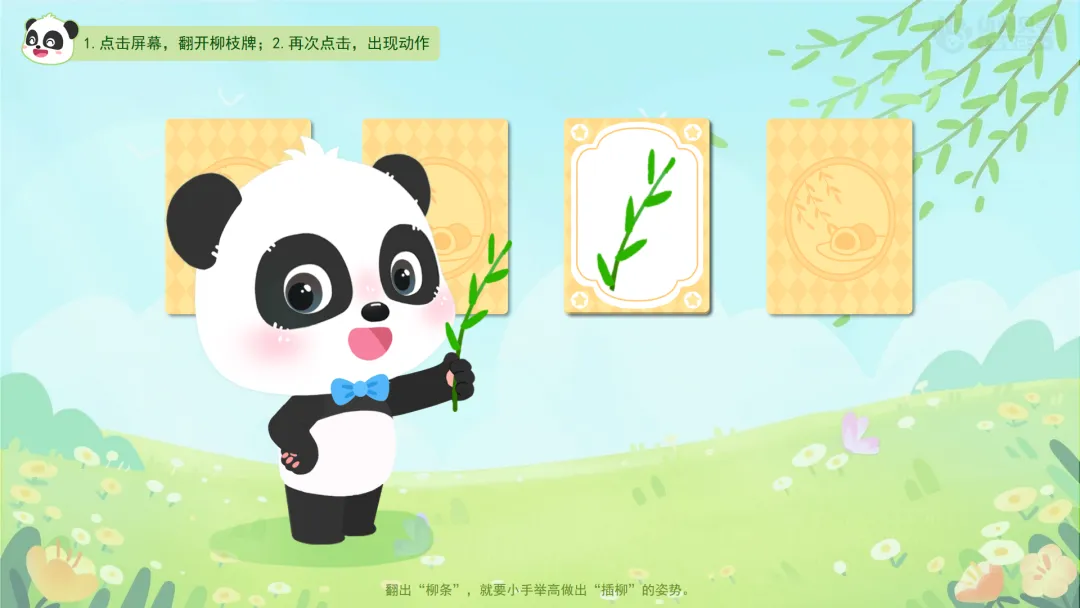 ——翻出“柳条”,就要小手举高作出“插柳”的姿势。