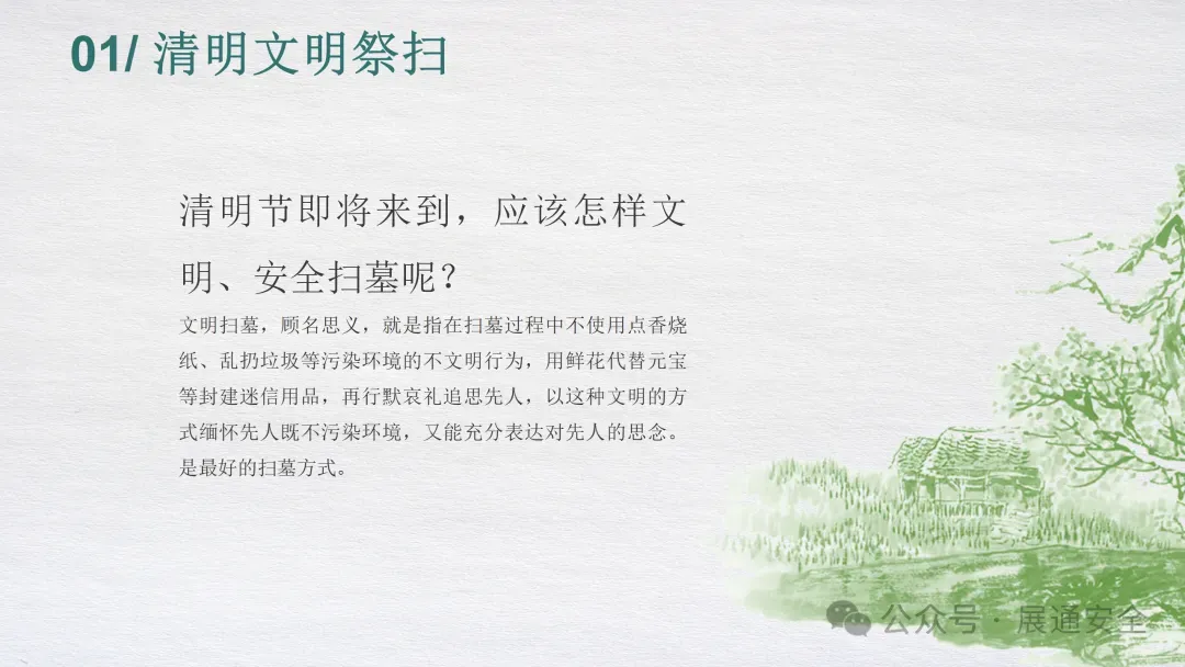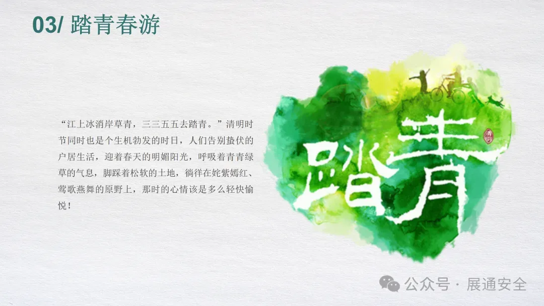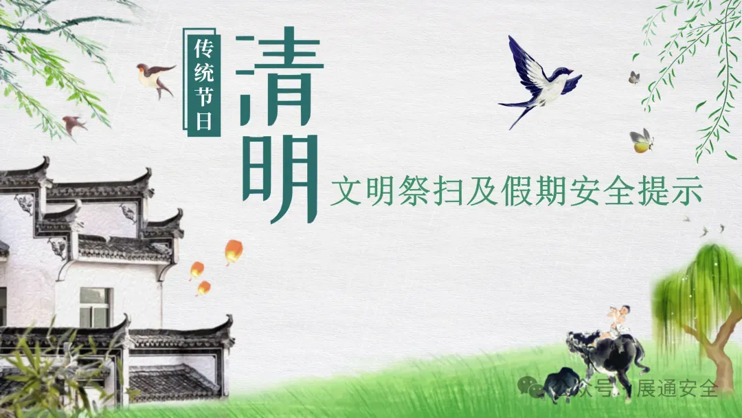 清明节是缅怀先烈、祭奠逝者、踏青郊游的传统节日,为切实保障全体员工假期人身安全、财产安全,杜绝各类安全事故发生,筑牢安全防线,特发布一则假期安全提示,我们一起认真学习、严格遵守,做好自我安全防护,度过一个安全、文明、有序的假期。