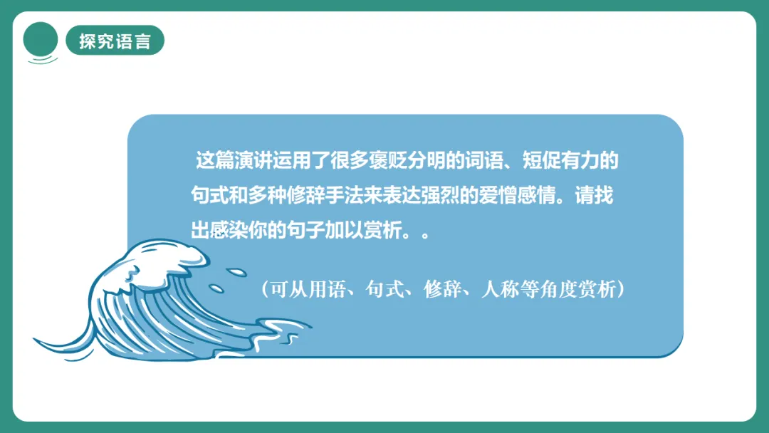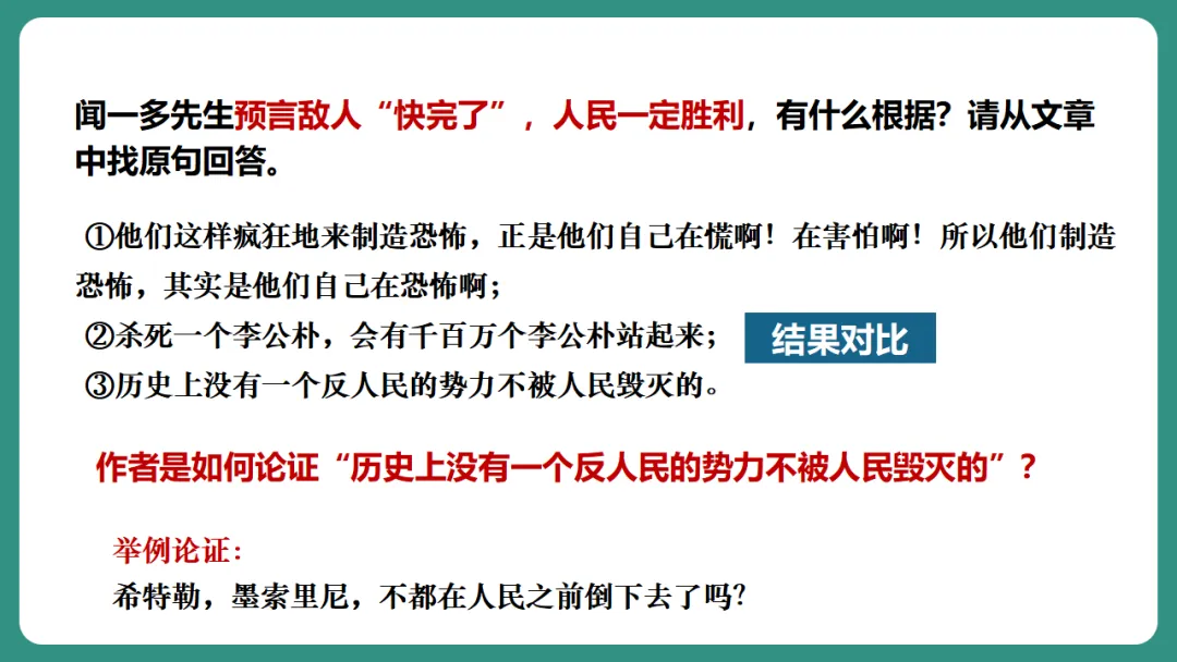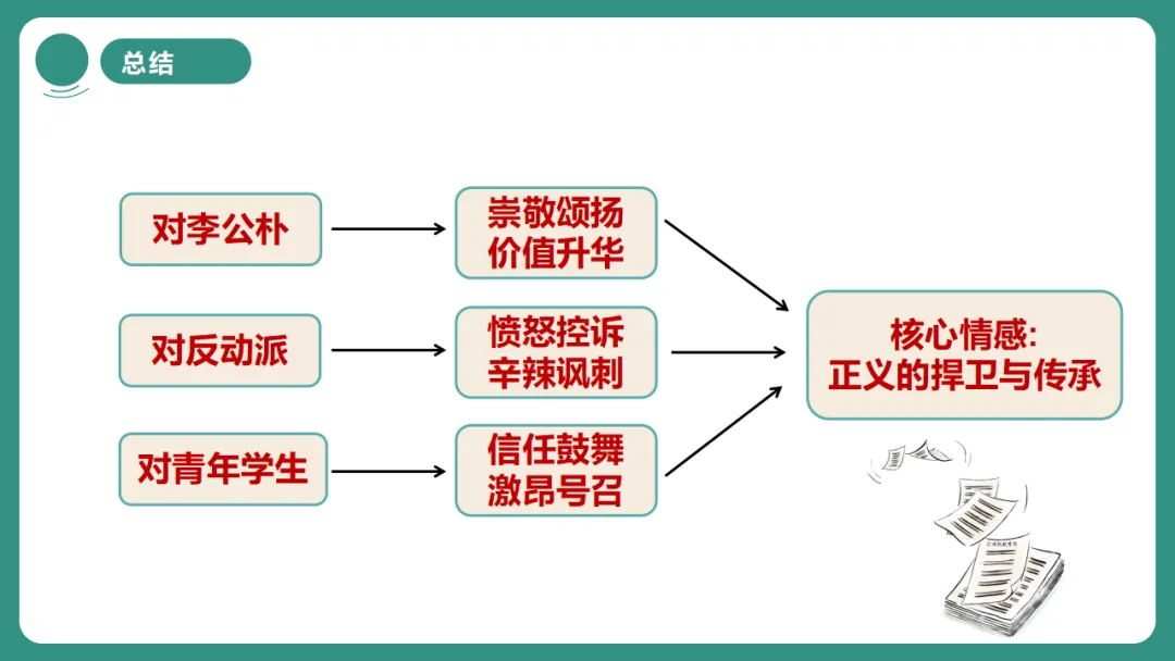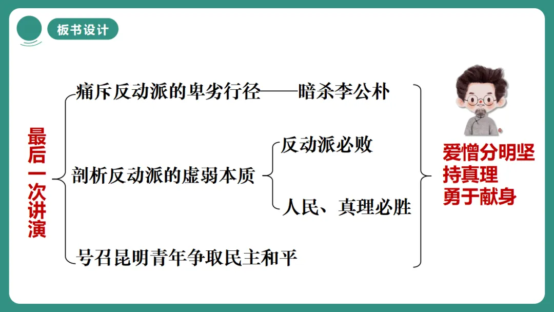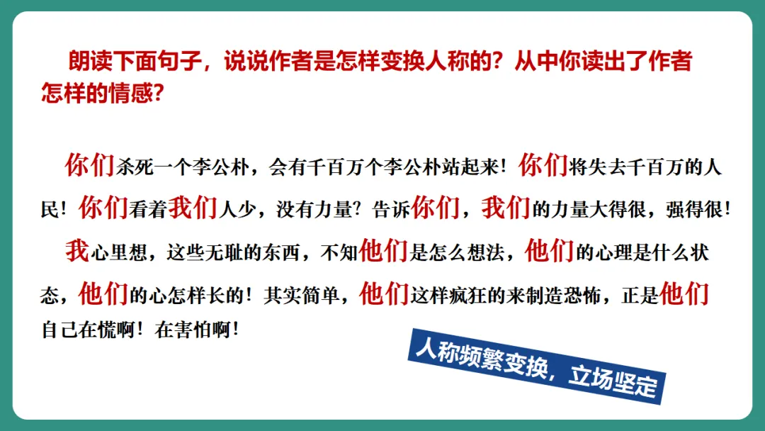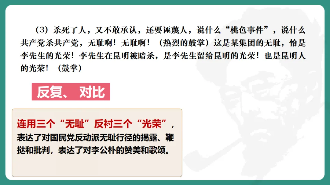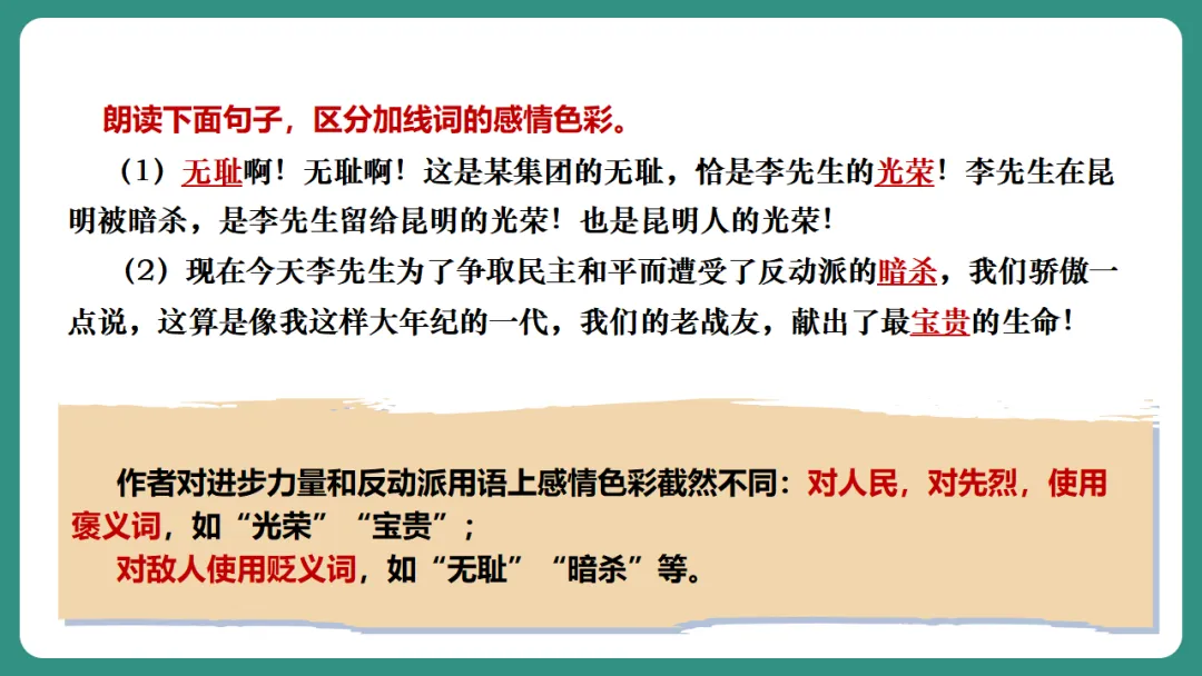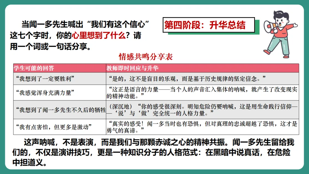 闻一多先生以“情感”为线索,从“愤慨痛斥”到“热烈歌颂”再到“激昂号召”,形成层层递进、震撼人心的力量。