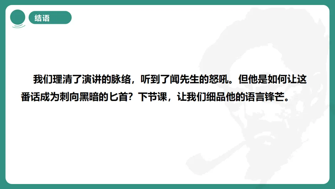 我们理清了演讲的脉络,听到了闻先生的怒吼。但他是如何让这番话成为刺向黑暗的匕首?下节课,让我们细品他的语言锋芒。