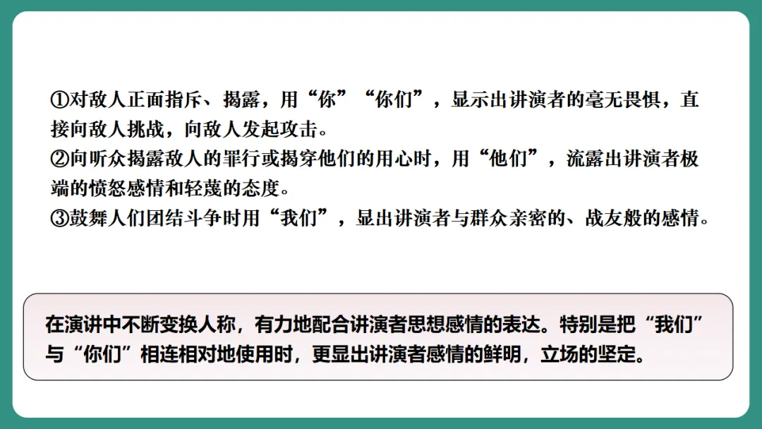3.把握演讲词中情感发展的脉络,理解其跌宕起伏的特点。