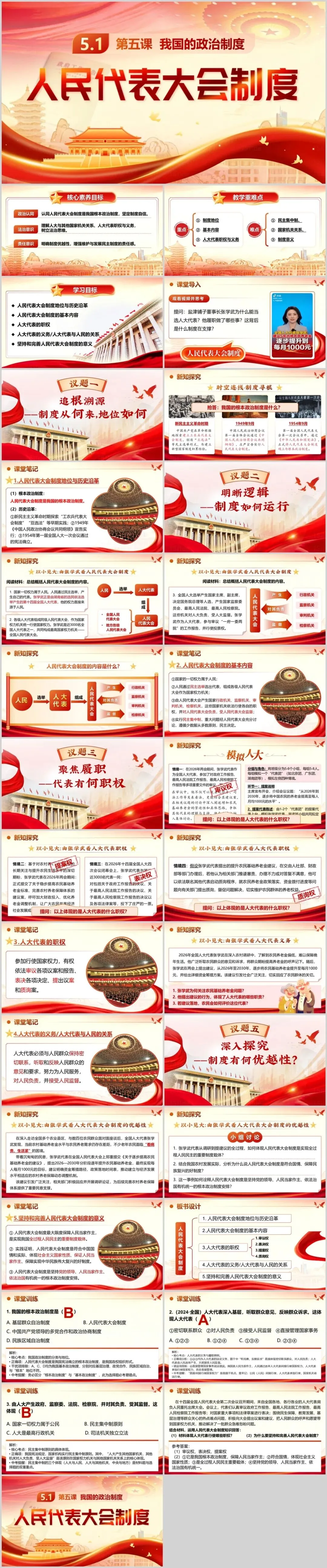 本期【会员群】更新课件5.1《人民代表大会制度》,本次课件内容是统编版道德与法治八年级下册第三单元第五课第一框,共30页,建议教学时长为1课时。