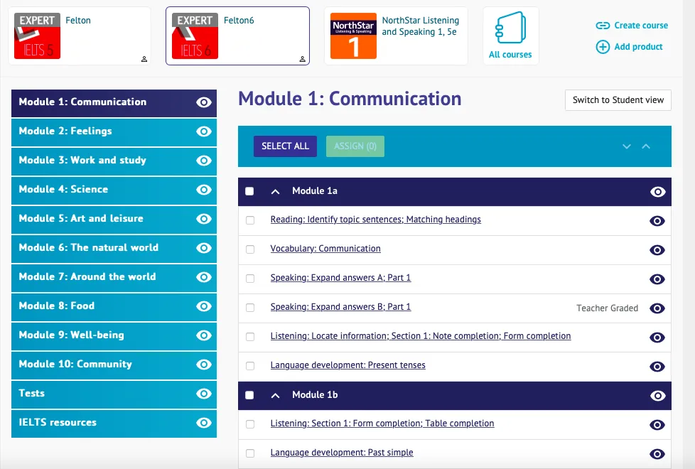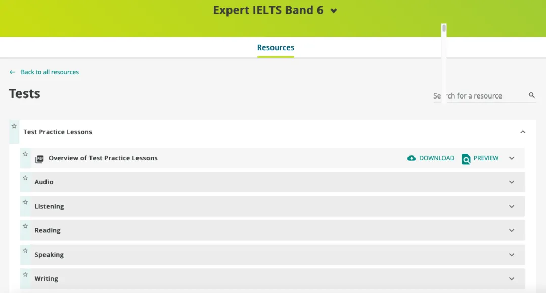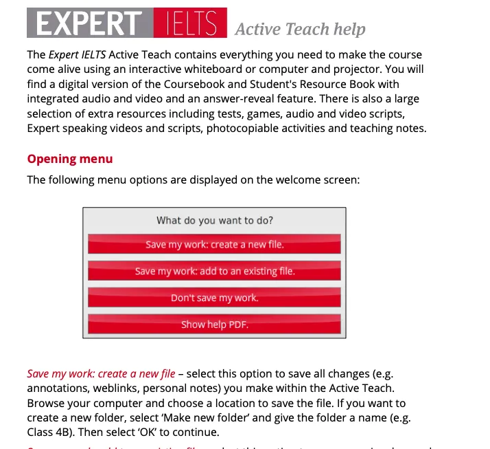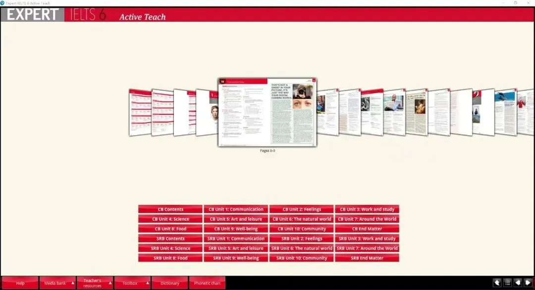 该雅思教学系统是以风靡海外的经典雅思教材《Expert IELTS》为基础进行的设计,该教材分为3个级别,分别为band 5,band 6,band 7.5,每个级别包含3本教材,学生用书,学生练习册以及教师用书。