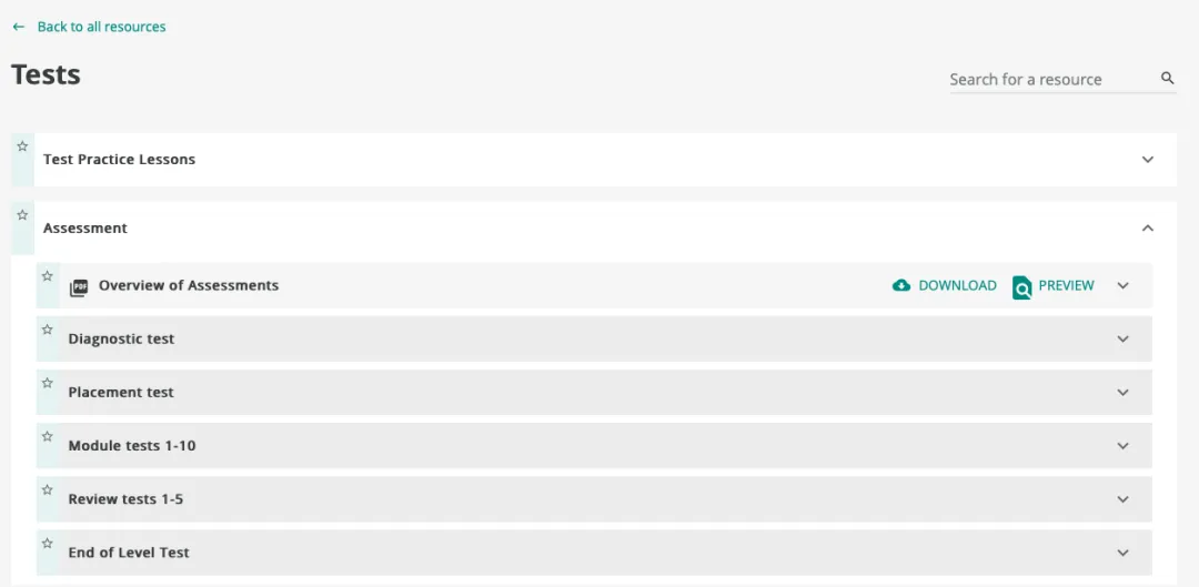 还有每个阶段的测试,教师版可以和个人版绑定,从而通过老师来分配考试,达到线上教学管理的应用。