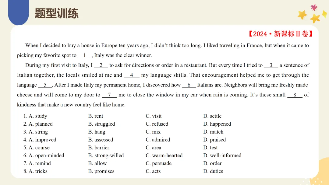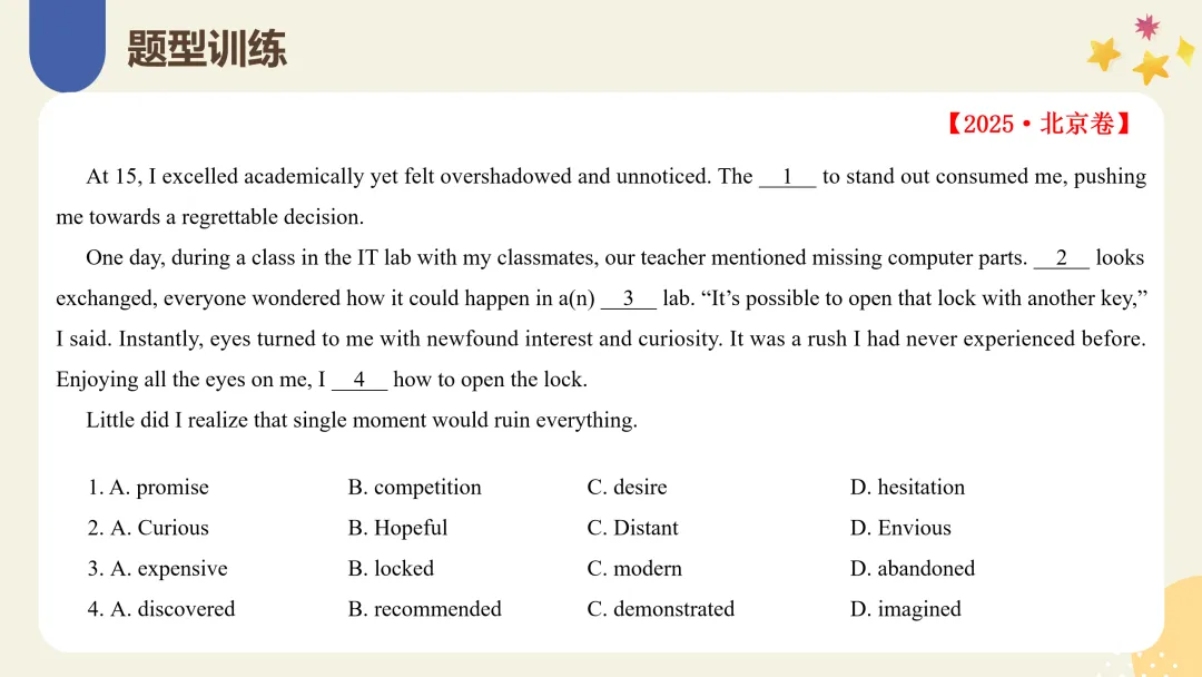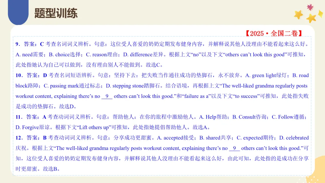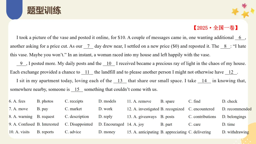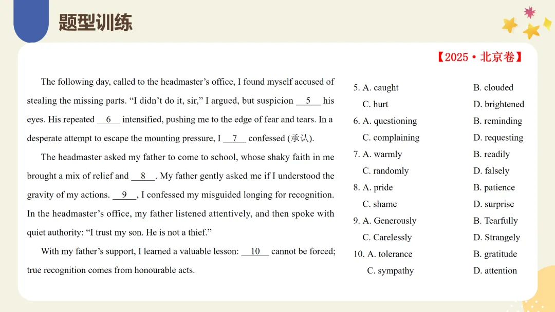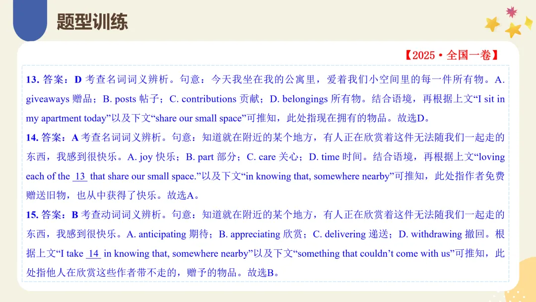 (每日课件获取方法:在公众号后台私信发送关键词【完形填空】即可获取今日课件,PS:链接有效期只有1天,请及时保存,失效不补。)