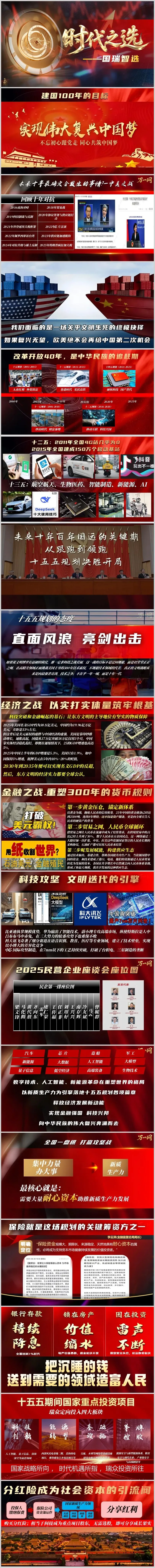 这场百年未有之大变局,没有中间选项。要么在博弈中胜出,共享全球发展的成果,让人民币走遍天下,让国民收入与国际接轨;要么在竞争中失利,面临资产贬值、发展受阻的困境。这不仅是国家层面的战略竞争,更与我们每一个人的财富安全、生活质量息息相关。未来十年,正是这场百年国运的关键期,而即将开启的“十五五”规划(2026-2030年),就是我们承接历史、扎实未来、决胜开局的关键窗口。面对这一历史时刻,我们该如何自处?又该如何把握时代的脉搏,守护并增值我们辛勤积累的财富?答案,或许就藏在国家擘画的宏伟蓝图,以及与之同频共振的金融工具之中。