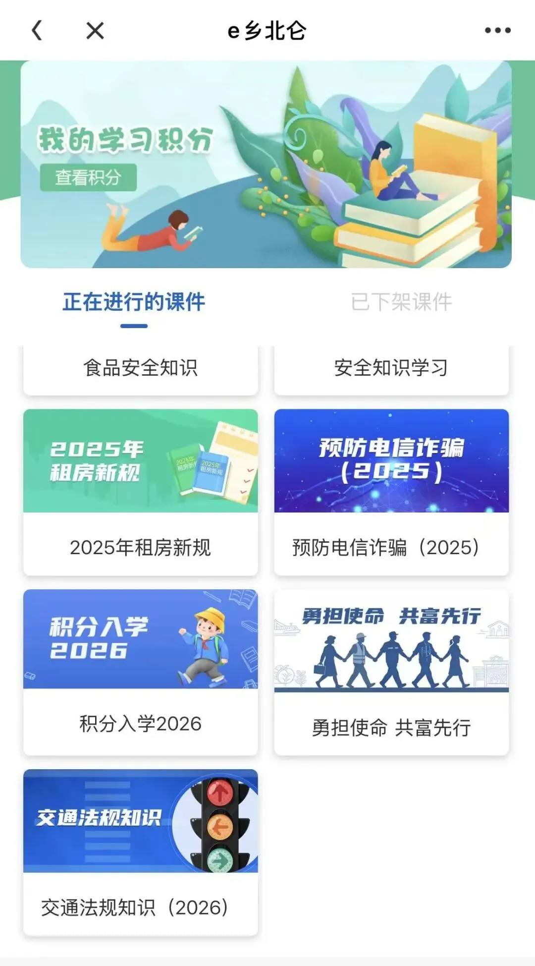 “浙里办APP”——e乡北仑站积分学习栏目相关课件将于3月31日24时下架,各位积分申请人可抓紧时间前往“浙里办”APP学习,目前,课件《积分入学2026》《预防电信诈骗(2025)》《2025年租房新规》《勇担使命 共富先行》《交通法规知识(2026)》均已上架,用户通过相关内容的学习并完成答题,既可以获取实用的知识,学习合格后还可以获得相应积分。